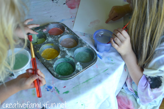 We worked on watercolor kites from Little Family Fun this morning. We made paper plate ladybugs from Crafts By Amanda, giant painted paper flowers from Buggy & Buddy, and did a few experiments to find out how big the dinosaurs were from this post by Frugal Fun for Boys.