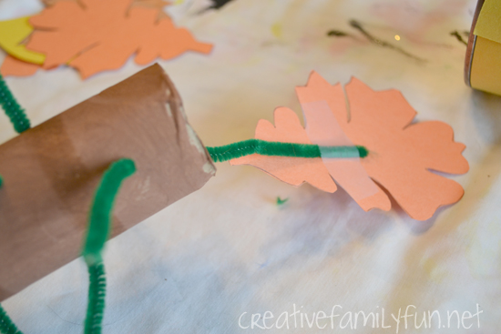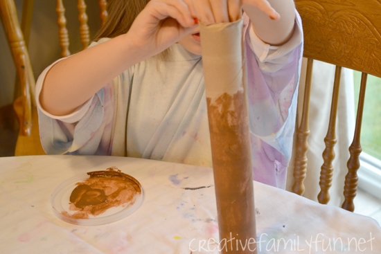 While you’re cutting out your leaves, you’ll also want to prep your cardboard tube by painting it brown.